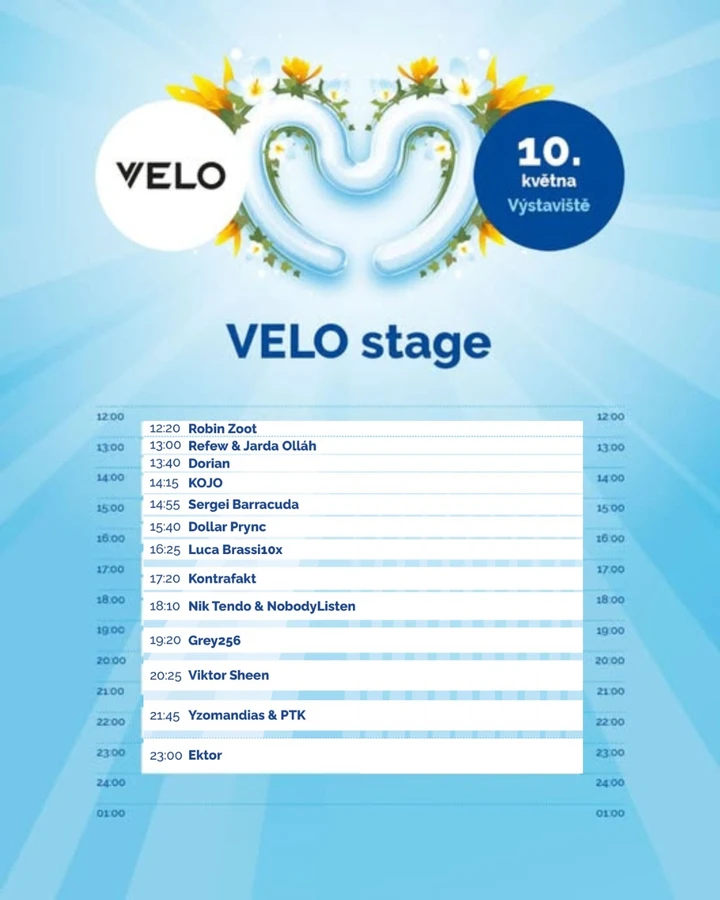Nová VELO stage přinese doslova vesmírný zážitek – představí se Robin, Zoot, Refew, Dorian, KOJO, Sergei Barracuda, Dollar Prync, Kontrafakt, Luca Brassi10x, Nik Tendo & NobodyListen, Grey256, Viktor Sheen, Yzomandias & PTK a Ektor.