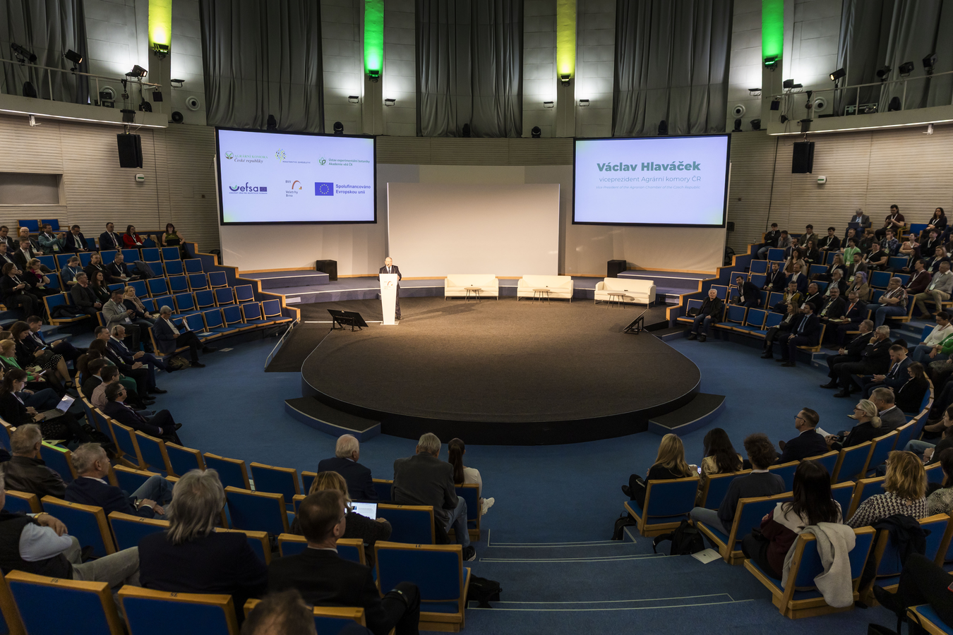Za Agrární komoru ČR vystoupil viceprezident Václav Hlaváček, který nejprve ocenil návrat veletrhu k jeho původní velikosti a významu: „Mám radost z toho, že se podařilo po dlouhé časové promlce znovu obnovit zemědělské a lesnické veletrhy do té dimenze, na kterou jsme byli zvyklí.“ V samotném příspěvku pak varoval, že se české zemědělství nachází v kritickém bodě, kdy se dopady klimatické změny prolínají s geopolitickými krizemi. Zdůraznil, že čas pro teoretické diskuse vypršel a musí být nahrazen konkrétními činy v oblasti technologií i legislativy. Za zásadní překážku konkurenceschopnosti a potravinové soběstačnosti, která je klíčová pro bezpečnost státu, označil „invazivní byrokracii“ Evropské unie a nerozhodnost Evropské komise v otázce nových metod šlechtění. Podle Hlaváčka je pro naplnění environmentálních cílů nezbytné urychleně zavést moderní metody molekulární genetiky a genomiky, které by umožnily pěstování odolnějších plodin.