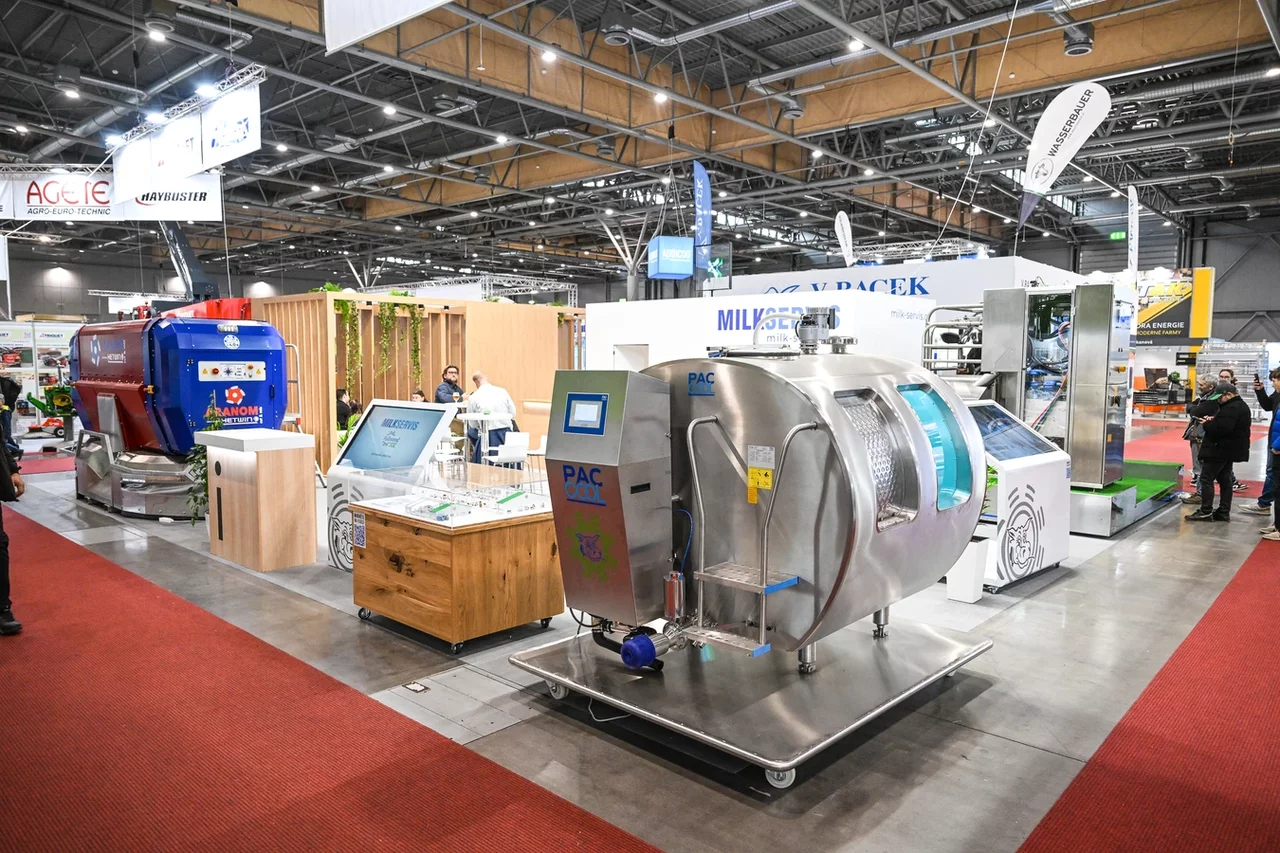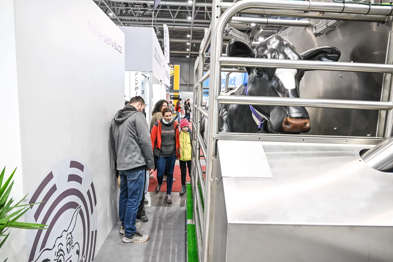 Expozice společnosti Milkservis na veletrhu AGRISHOW patří k těm, které návštěvníky okamžitě vtáhnou do světa moderní živočišné výroby. Dominují jí funkční ukázky robotizovaných technologií, které dnes stále více určují směr vývoje v chovu skotu.