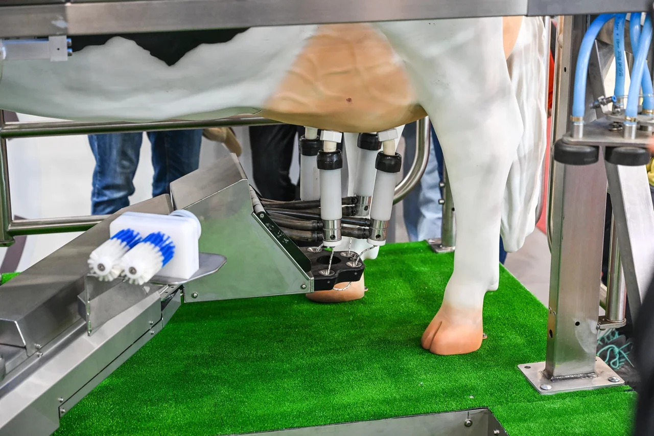 Zajímavým prvkem expozice je i model budoucího uspořádání dojírny. „Ukazujeme systém, kde jsou roboti integrováni přímo v dojírně – v podstatě jde o dojírnu složenou z robotů,“ vysvětluje Michal Weber s tím, že právě tento koncept může v budoucnu výrazně změnit organizaci práce na farmách.