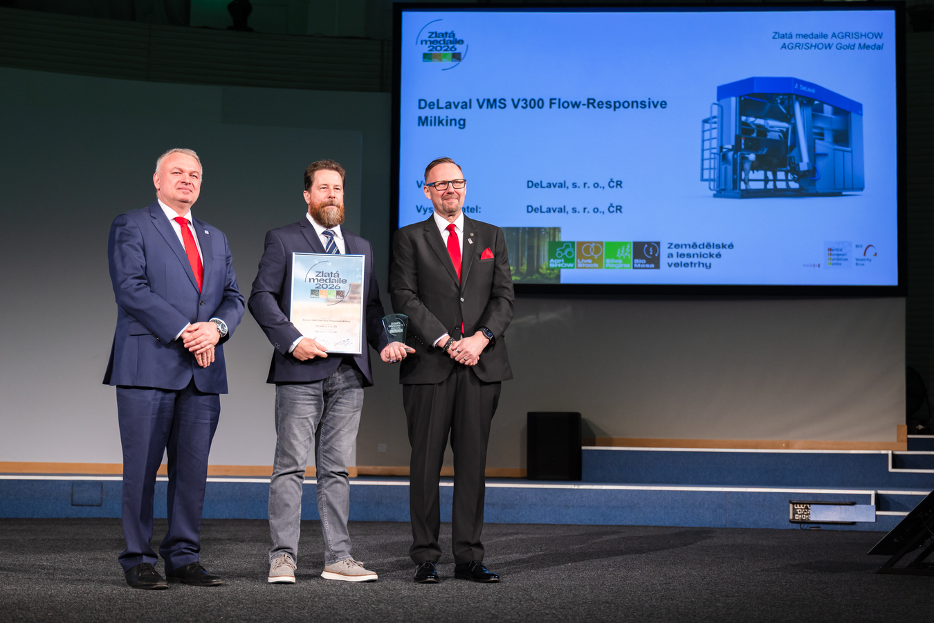 Čtvrtý vítězný exponát je určen pro živočišnou výrobu a cenu za něj převzala firma DeLaval. Inovativní prvek dojících robotů DeLaval VMS V300 Flow-Responsive Milking zvyšuje efektivitu dojení díky dynamickému řízení podtlaku na úrovni jednotlivých čtvrtí vemene.