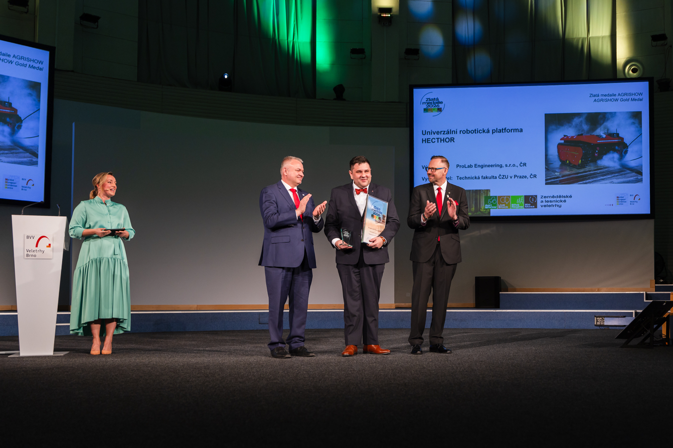 Úspěch v soutěži slavila také Technická fakulta ČZU v Praze, která vystavuje výrobek společnosti ProLab Engineering. Oceněný exponát HECTHOR je univerzální robotická platforma, která může být osazena zařízením pro monitoring stavu porostu nebo aplikačním zařízením pro aplikaci pesticidů či hnojiv. Stroj může být využit i v rámci činností IZS.