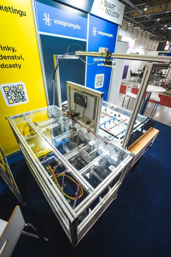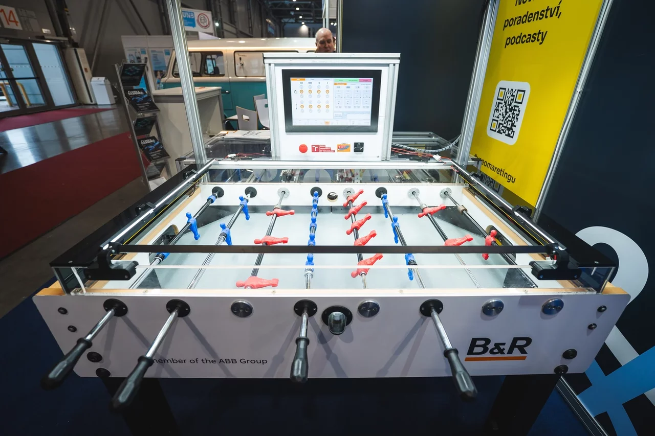 Robot klavírista zaujme téměř každého kolemjdoucího na první pohled. Jde ale o atraktivní názornou ukázku programování průmyslových robotů a nadřazených řídicích systémů, kterou zde prezentuje Technická univerzita Ostrava.