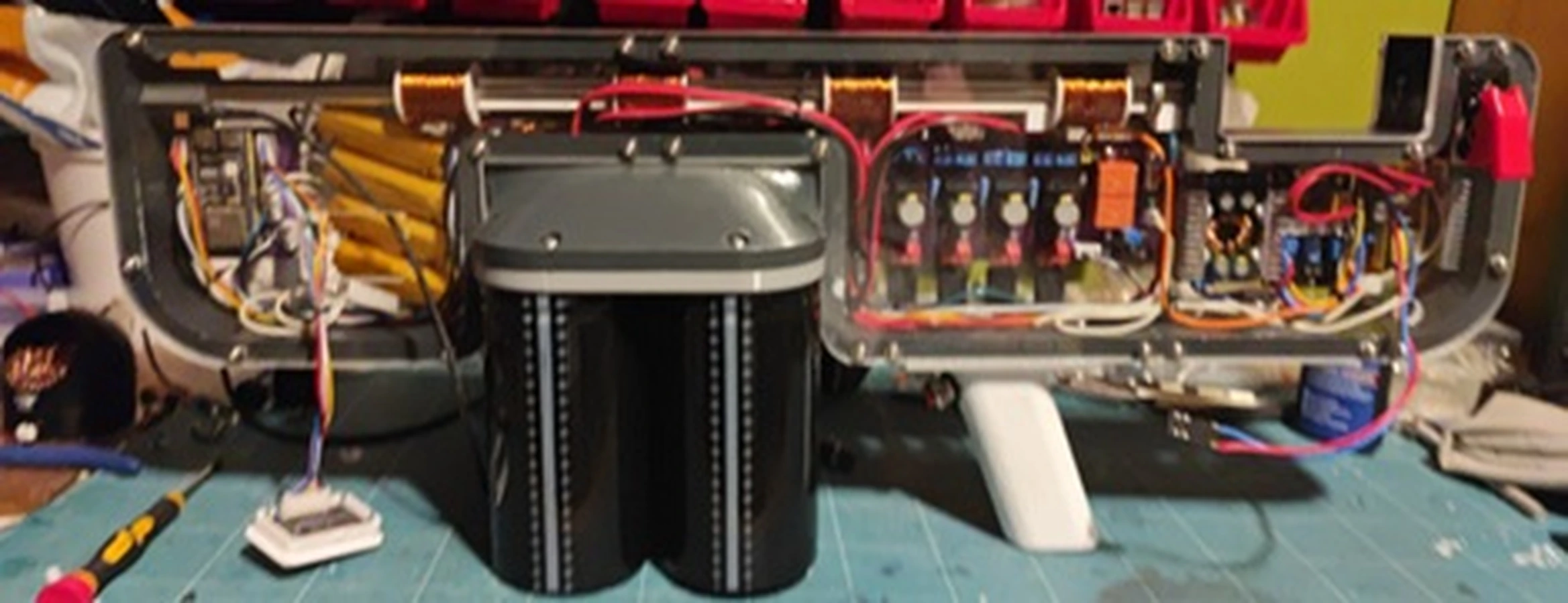Projekt elektromagnetický urychlovač se zaměřuje na návrh a realizaci zařízení, které pomocí elektromagnetické síly urychluje kovový objekt. Princip je založen na cívce napájené krátkým silnoproudým pulzem z kondenzátorů, která vytváří magnetické pole urychlující ocelový váleček. Hlavním cílem je vytvořit funkční přenosný prototyp s maximální energií střely přibližně 16 J a napájecím napětím do 120 V. Zařízení je navrženo především jako názorná pomůcka pro výuku fyziky a elektrotechniky, kde může demonstrovat jevy jako elektromagnetická indukce nebo spínání silnoproudých pulzů. Součástí projektu je také návrh bezpečnostních prvků, například automatického vybití kondenzátorů po vypnutí zařízení.