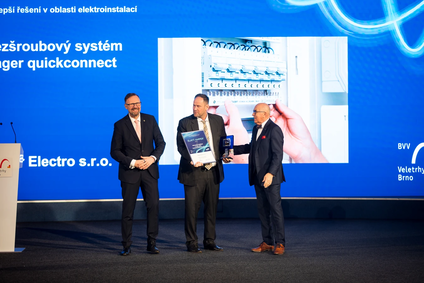 Společnost Hager získala na veletrhu AMPER 2026 ocenění Zlatý AMPER v kategorii Nejlepší řešení v oblasti elektroinstalací za svůj bezšroubový systém quickconnect.