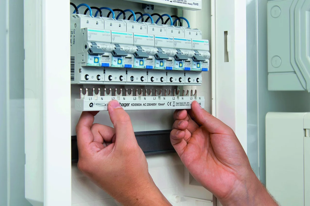 Bezšroubové propojení quickconnect kombinuje rychlost a bezpečnost. S technologií bezšroubového připojení quickconnect jsou vodiče a hřebenové přípojnice jednoduše zapojeny pomocí zásuvného systému místo šroubových svorek. V porovnání se šroubovými spoji tento systém díky trvale konstantnímu působení síly přítlačné svorky na vodič a přípojnici zvyšuje bezpečnost systému. V neposlední řadě také zkracuje čas instalace až o 40 %.