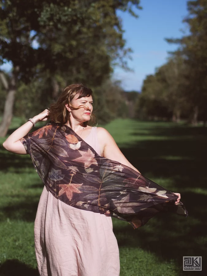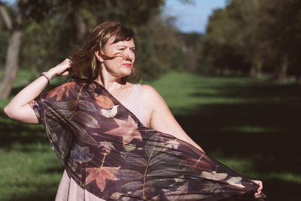 Kateřina se věnuje i tzv. ecoprintu neboli přímému tisku rostlinami na hedvábí, ale i na další přírodní materiály. Během těchto alchymistických seancí vznikají výjimečné šály a topy s jemnými vzory, které jim vtiskla sama příroda. Ta je ostatně Kateřině tou největší inspirací.