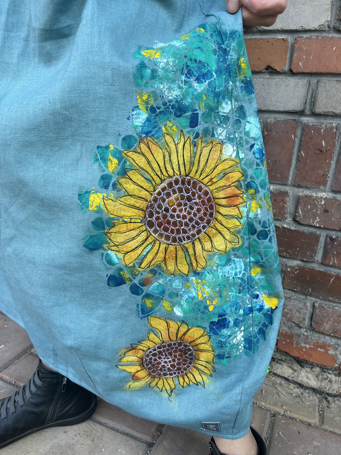 Ve své tvorbě kombinuji různé textilní techniky jako tisk, sítotisk, voskovou batiku, patchwork a quilt. Velmi blízké je mi také zatkávání ovčí vlny, kdy barevnou vlnu zaplstím přímo do látky. Výsledný motiv pak dotvářím quiltováním kontrastní nití, která mu dodá strukturu i hloubku.