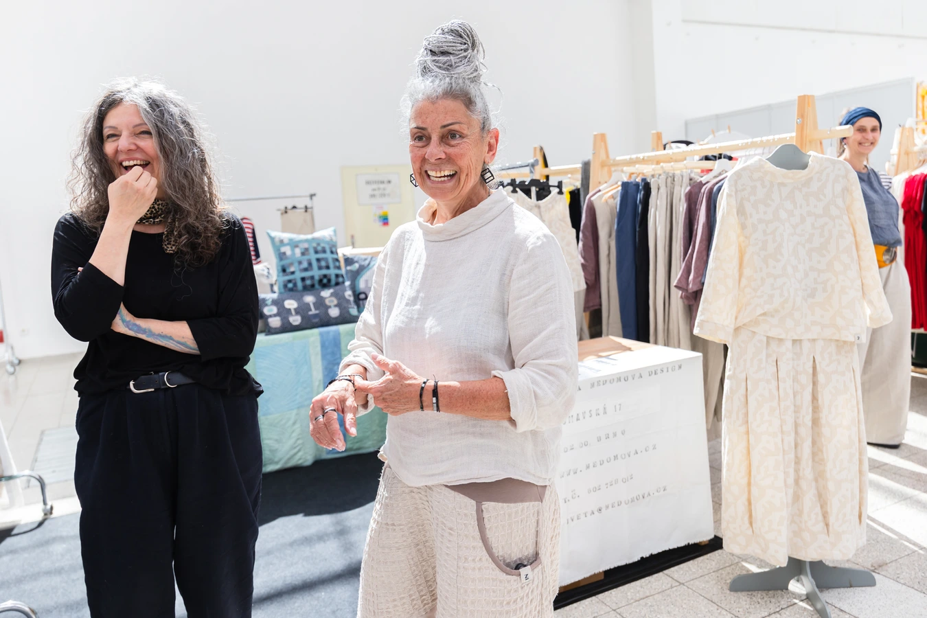 Součástí veletrhu je také autorská módní přehlídka, kde Iveta Nedomová představuje nové šaty, bundy, košile i modely pro přechodné období. Nechybí nové střihy košil, které lze kombinovat ke kalhotám, sukním i šatům, ani výrazné modely z nových žakárových režných lněných látek. Zajímavostí je, že modelkami nejsou profesionálky, ale ženy přímo z prostředí veletrhu. A právě to její tvorbu vystihuje nejlépe – móda není jen pro mola, ale především pro skutečné ženy, které chtějí být samy sebou.