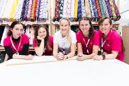 Na letošním veletrhu nabízí firma široký sortiment pro šití i tvoření. Návštěvníci zde najdou úplety, teplákoviny, mušelíny, šatovky, kostýmovky, náplety, nitě i galanterii. Nechybí ani příze na pletení a háčkování, které jsou v nabídce nově. Velký zájem je také o praktické pomůcky, například oblíbené mini žehličky a žehlící podložky. Právě ty patří momentálně mezi nejprodávanější produkty. Jsou ideální nejen na drobné domácí šití, ale také na cestování, což zákaznice velmi oceňují.