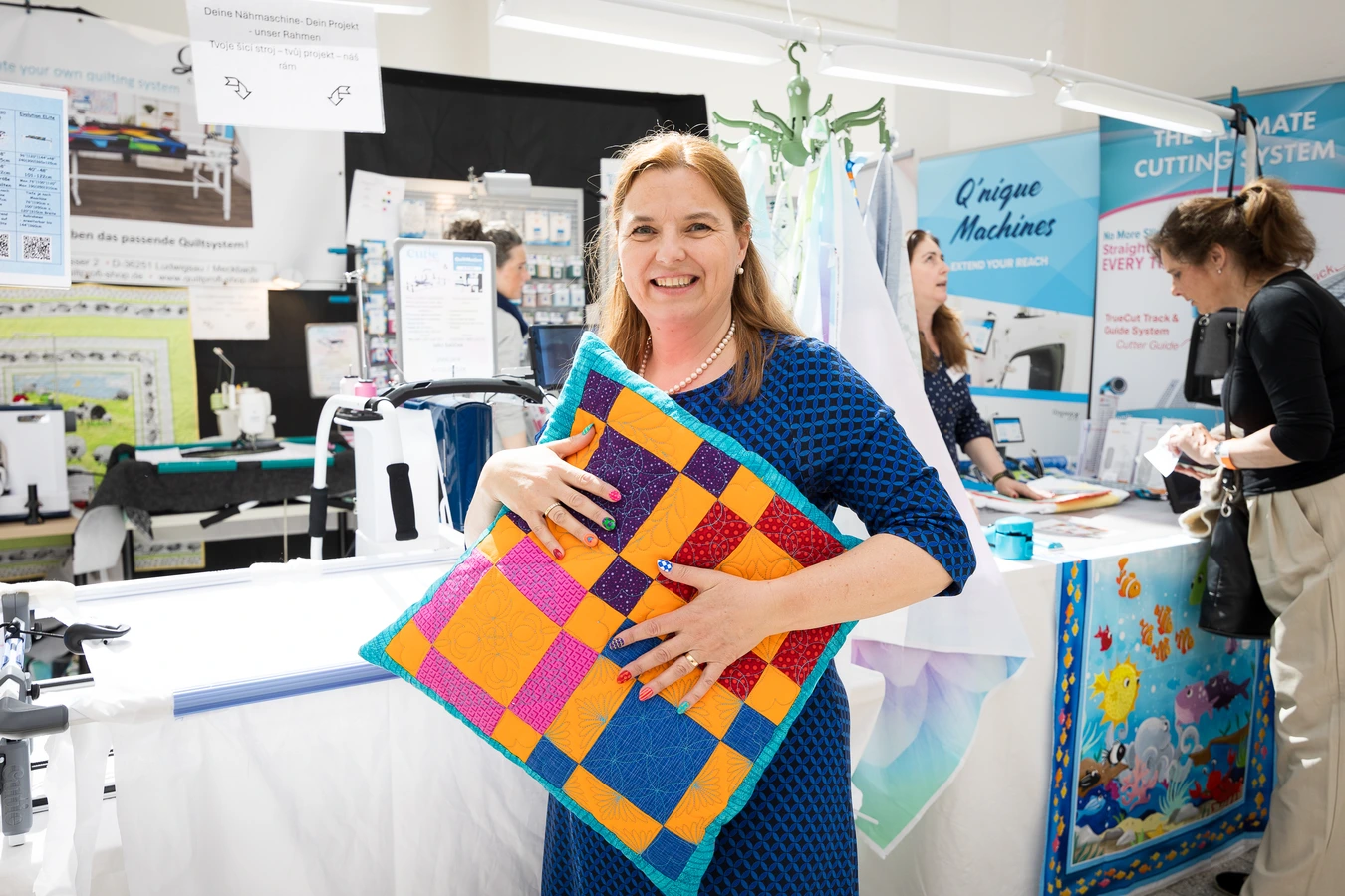 Právě tato praktická zkušenost se stala jedním z hlavních taháků expozice. U stánku bylo po celé tři dny plno a velký zájem projevily i děti. „My s kolegyní máme každá vlastní šicí studio a jsme ambasadorky této značky hlavně proto, že quiltujeme i s dětmi. A děti? Ty k tomu přistupují úplně bez respektu. Prostě tvoří. Udělají si kytičku, zahrádku, cokoliv chtějí – a jsou v tom úžasné.“ Studio Jany Verešové najdete ve Vídni pod příznačným názvem Quilt 123.