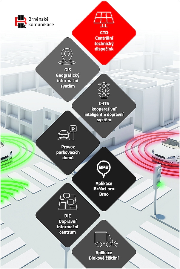 Společnost Brněnské komunikace a.s. byla založena v r. 1995 a je městskou společností, jejímž jediným akcionářem je statutární město Brno. Zajišťuje zejména inženýrskou činnost dopravních a pozemních staveb, projekční činnost a majetkoprávní přípravu chystaných staveb, zpracovává prognózy, plány a modely dopravy.Na území města Brna spravuje a udržuje v činnosti světelnou signalizaci na křižovatkách, dopravní značení, dohlíží na stav komunikací a dopravních staveb vč. tunelů. Je také pověřena organizací dopravy v klidu. Neoddělitelnou součástí širokého spektra činností jsou i geodetické práce, zimní a letní údržba komunikací a centrální řízení dopravy ve městě Brně.
