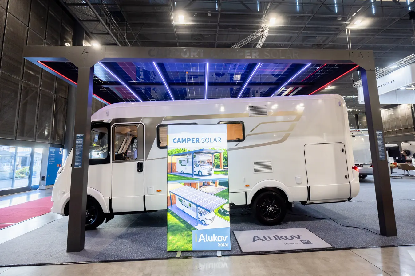Na veletrhu Caravaning Brno se letos poprvé představila společnost Alukov, tradiční český výrobce hliníkových konstrukcí a zastřešení, která slaví už 30 let na trhu. Návštěvníky zaujala především inovativní novinka – Carport Camper Solar, tedy solární zastřešení pro obytné vozy a karavany.