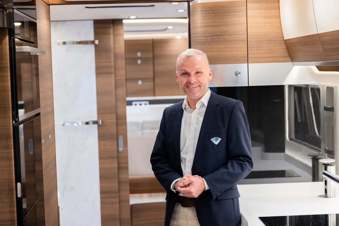 Společnost Blue Rent patří mezi stálice veletrhu Caravaning Brno – ani letos jejich přítomnost rozhodně nepřehlédnete. Jak s úsměvem říká spolumajitel Filip Guryča, firma obsadila hned tři výstavní plochy: „Máme prémiové vozy Concorde v hale V, modely do 3,5 tuny v pavilonu P a venku stojí naše dodávky ve vestavbách, které se už nikam nevešly. Je to dobré znamení – karavaningu se daří.“