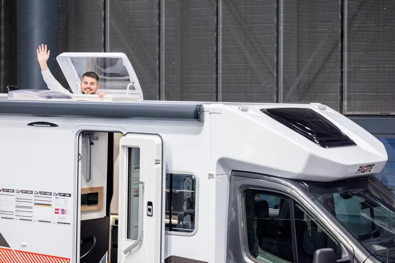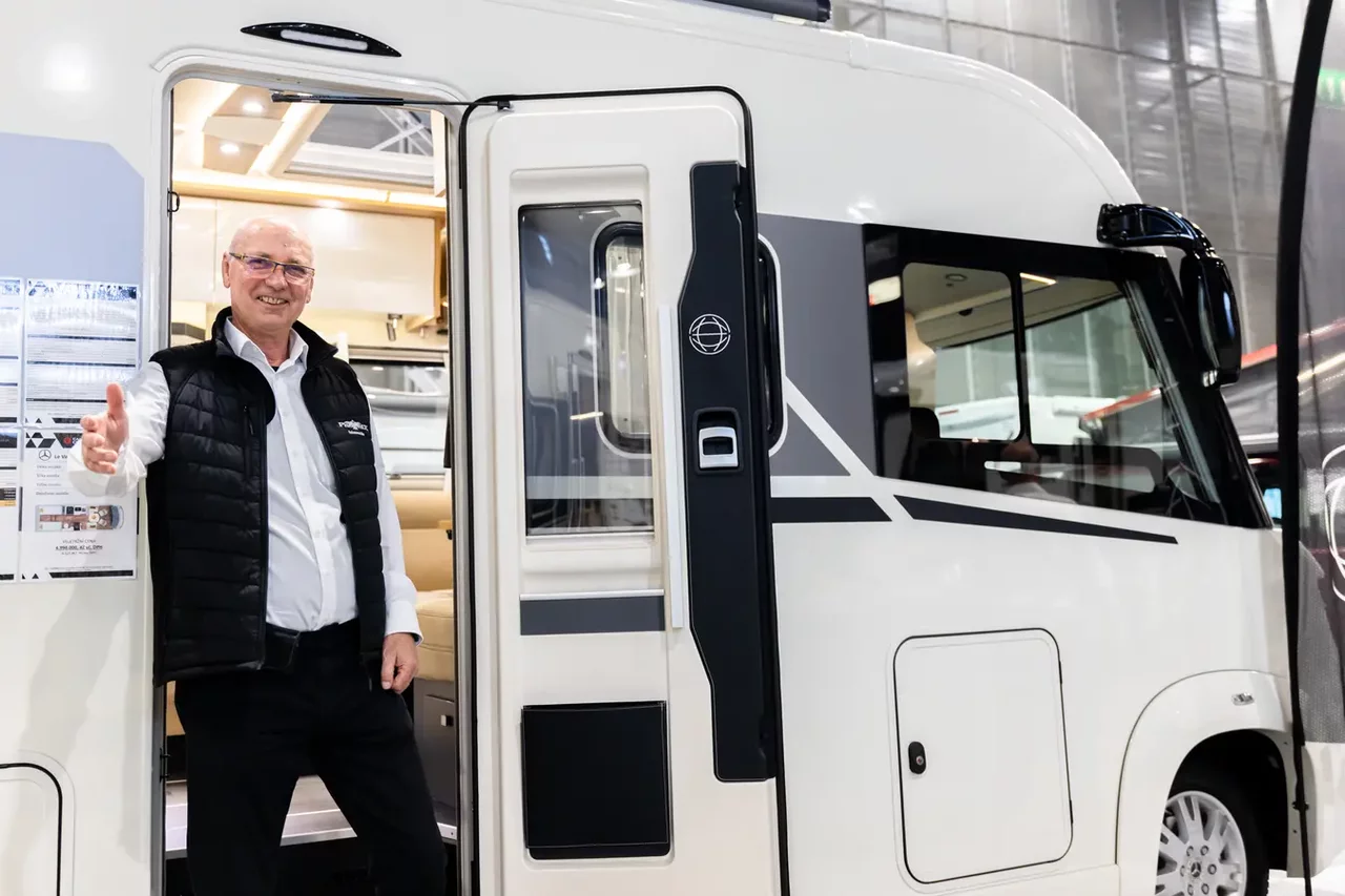 Na druhé straně stánku vítá návštěvníky Ivan Novotný, který nám představuje desítku obytných vozů včetně nejnovějších modelů. „Přivezli jsme deset aut – jednoho Fénixe, tři Le Voyageur a zbytek tvoří Pilote,“ vypočítává. „Každý z výrobců přivezl svou novinku, například Le Voyageur Heritage 80 GJL na podvozku Mercedes-Benz nebo Pilote A690 GE.“