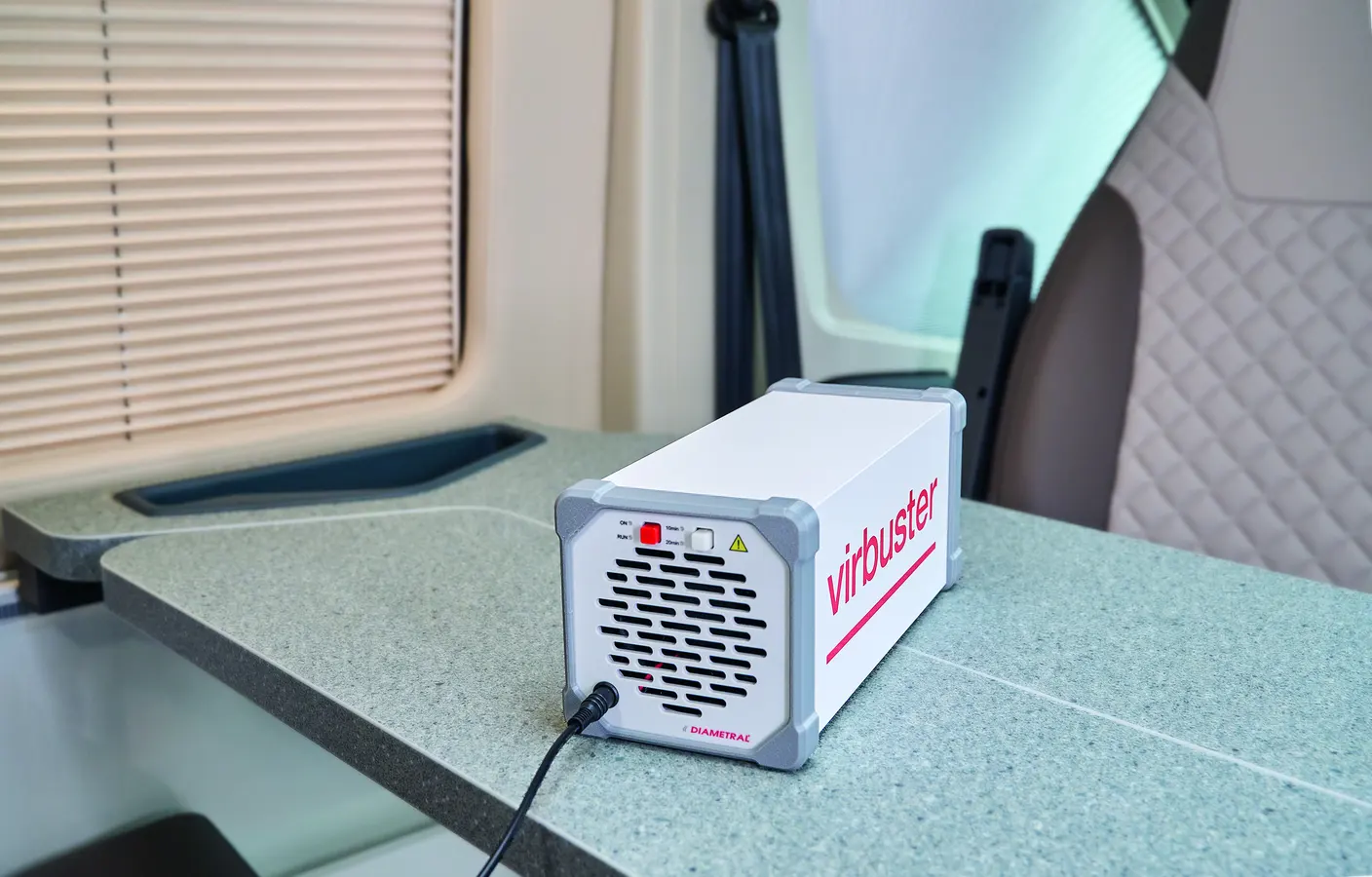 Druhou novinkou je mobilní generátor ozonu VirBuster. Tento přenosný přístroj dokáže během krátké doby vydezinfikovat interiér vozu a zbavit jej nežádoucích mikroorganismů. Trojmocný kyslík účinně ničí viry, bakterie, kvasinky, roztoče i plísně a současně odstraňuje přetrvávající pachy. Velkou výhodou je, že po aplikaci se ozon přirozeně přemění zpět na kyslík, takže prostředí zůstává čisté a bezpečné bez zbytkových látek.