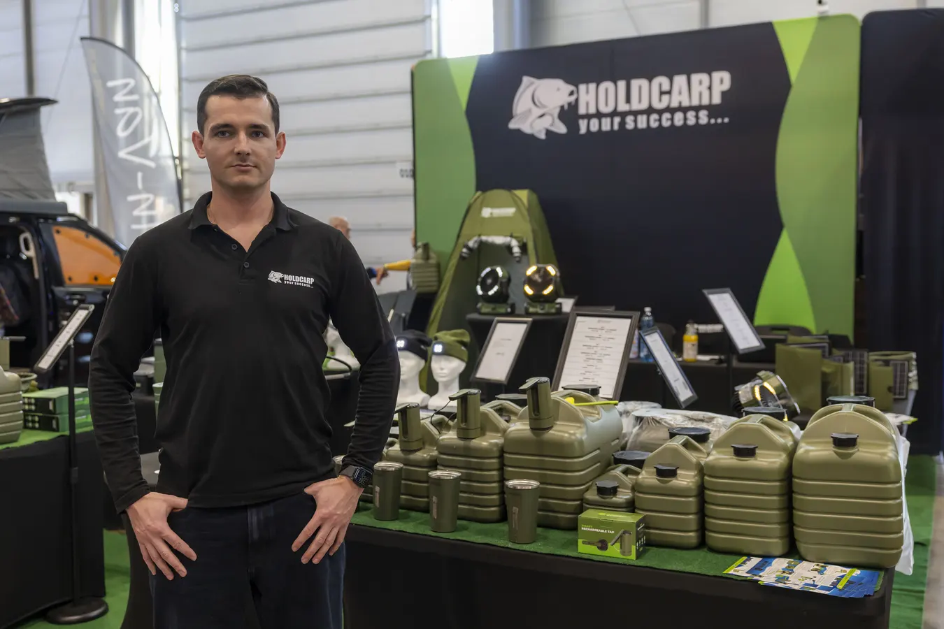 Super výbavu pro kempování přivezla poprvé slovenská firma HOLDCARP. Nabízí chytré doplňky, jako jsou kanystry s elektrickými pumpami, bezdrátové sprchy, větráky, čelovky a také kempingový vařič, který umí udělat výborné espresso. Velký zájem je také o jejich skládací mobilní toalety. O novinkách i firmě jsme si povídali s Jozefem Dubinou.