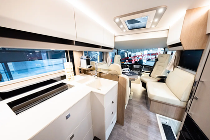 „Přivezli jsme návštěvníkům zcela nový model, který už nemá plyn,“ vysvětlujeJan Skolil. „Všechno je řešené elektricky nebo naftou – topení, ohřev vody i vaření. Auto má indukční varnou desku, velké baterie a nádrže, takže je plně soběstačné a připravené na další roky vývoje.“