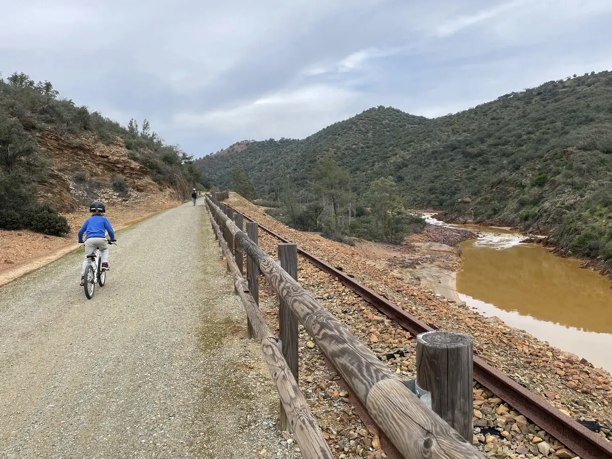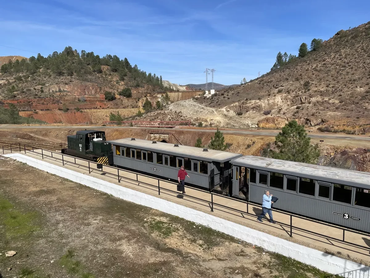 Souprava se s trhnutím rozjíždí. Ozývá se skřípění a vrzání. Dřevěné sedačky jsou nepohodlné. Šedý vlak se pomalounku sune po proudu říčky hluboko v údolí. Malé dřevěné vagony se kodrcají mezi skalami. Krajina vypadá na první pohled pustá. Stačí trochu přivřít oči a člověk má pocit, že je na Divokém západě a každým okamžikem se musí vyřítit divoké postavy na koních, které vlak v pustině přepadnou. Jsme na severovýchodě Španělska a říčka pod námi se jmenuje Rio Tinto. A je velmi zvláštní.