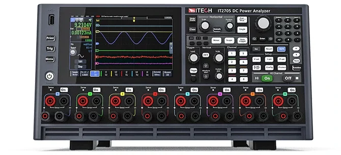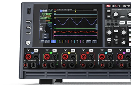 ITECH IT2705 is a highly integrated modular DC current analyzer. The control unit with a control panel and 7” touchscreen supports up to 8 plug-in modules with a power of 20–500 W. Available modules are: DC source, two-quadrant DC source, regenerative electronic load and source measurement unit (SMU).
