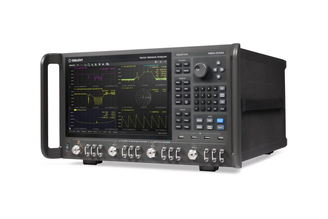 The Siglent SNA6134A vector network analyzer is the ideal tool for precise characterization of high-frequency components in the range from 9 kHz to 26.5 GHz. This instrument has a high dynamic range of 135 dB and an exceptionally low noise floor, making it the ideal choice for tuning filters, antennas and active elements with maximum accuracy. With support for measuring all four S-parameters, time-domain analysis and advanced functions for measuring scalar and vector quantities, you gain comprehensive insight into the behavior of your RF circuits.