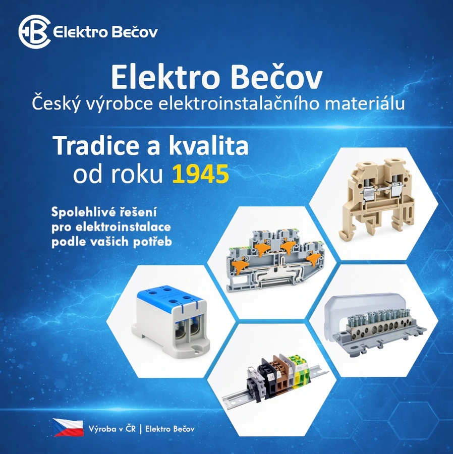 Elektro Bečov is a Czech manufacturer of electrical connecting materials with a long history dating back to 1945. The company specializes in the manufacture and sale of a wide range of products for electrical installations, including terminal blocks, PS screwless terminals, grounding terminals, pole fittings, and other connecting materials.