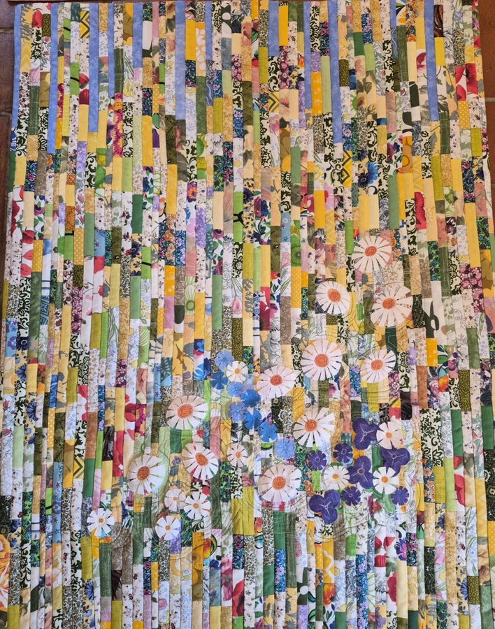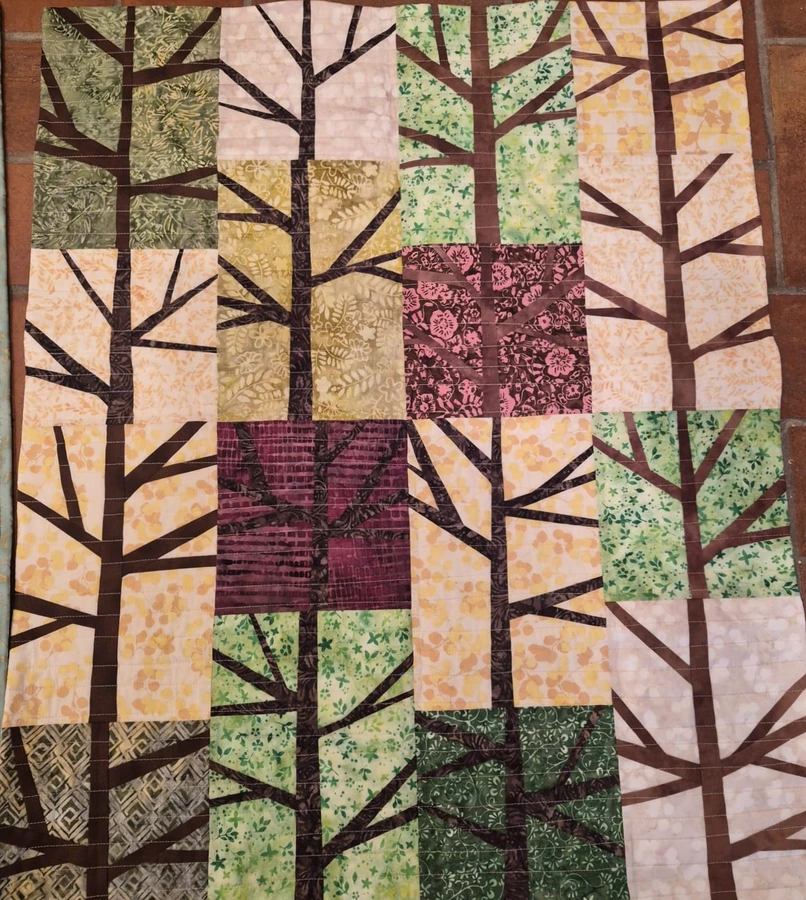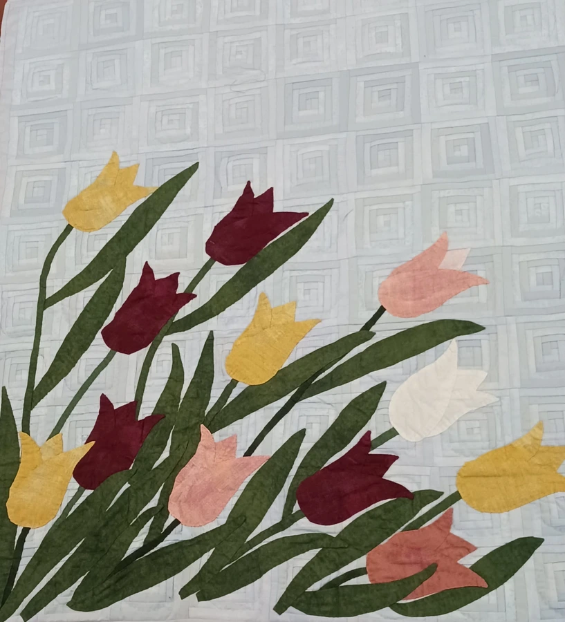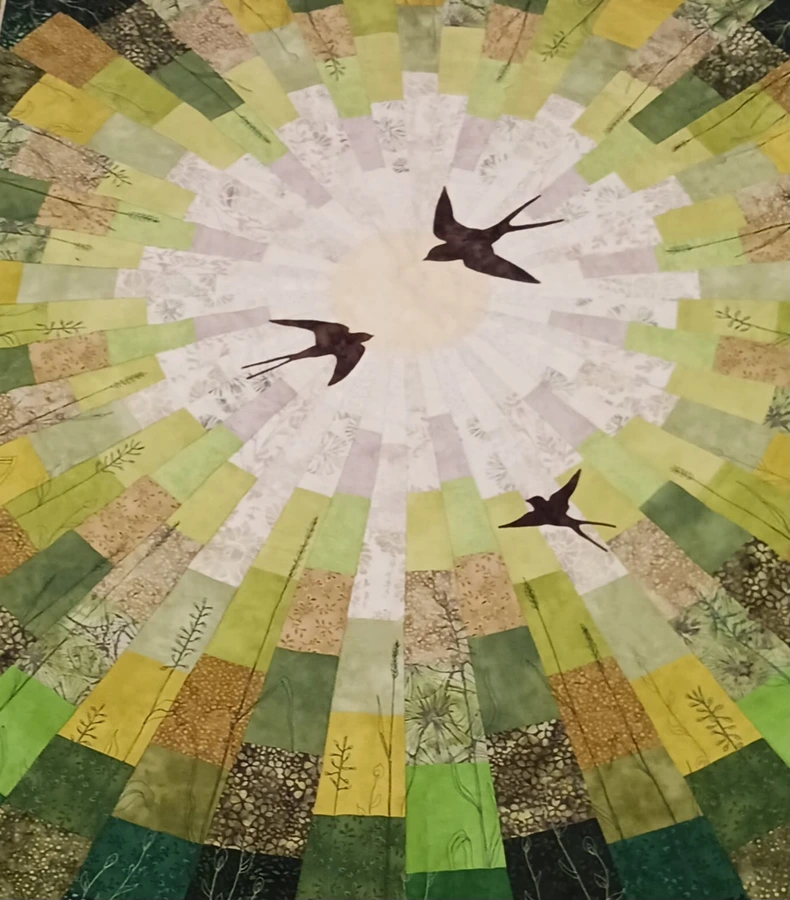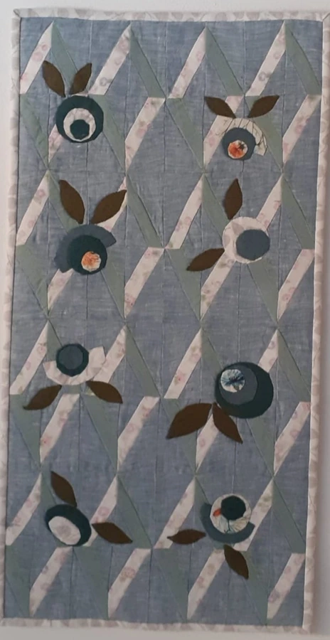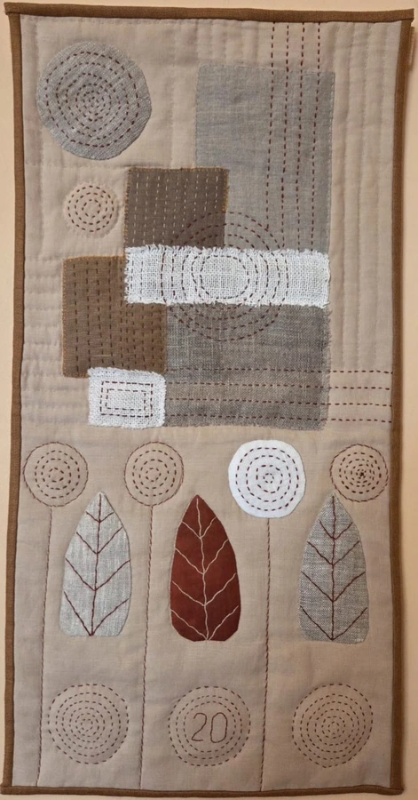 This collection loosely follows last year’s joint Spring sampler. It features a total of 34 works in a unified format of 80 × 100 cm. Each quilt is unique—ranging from classic patchwork blocks to appliqué and embroidery, as well as contemporary textile techniques, painting, printing, batik, and tulle layering.