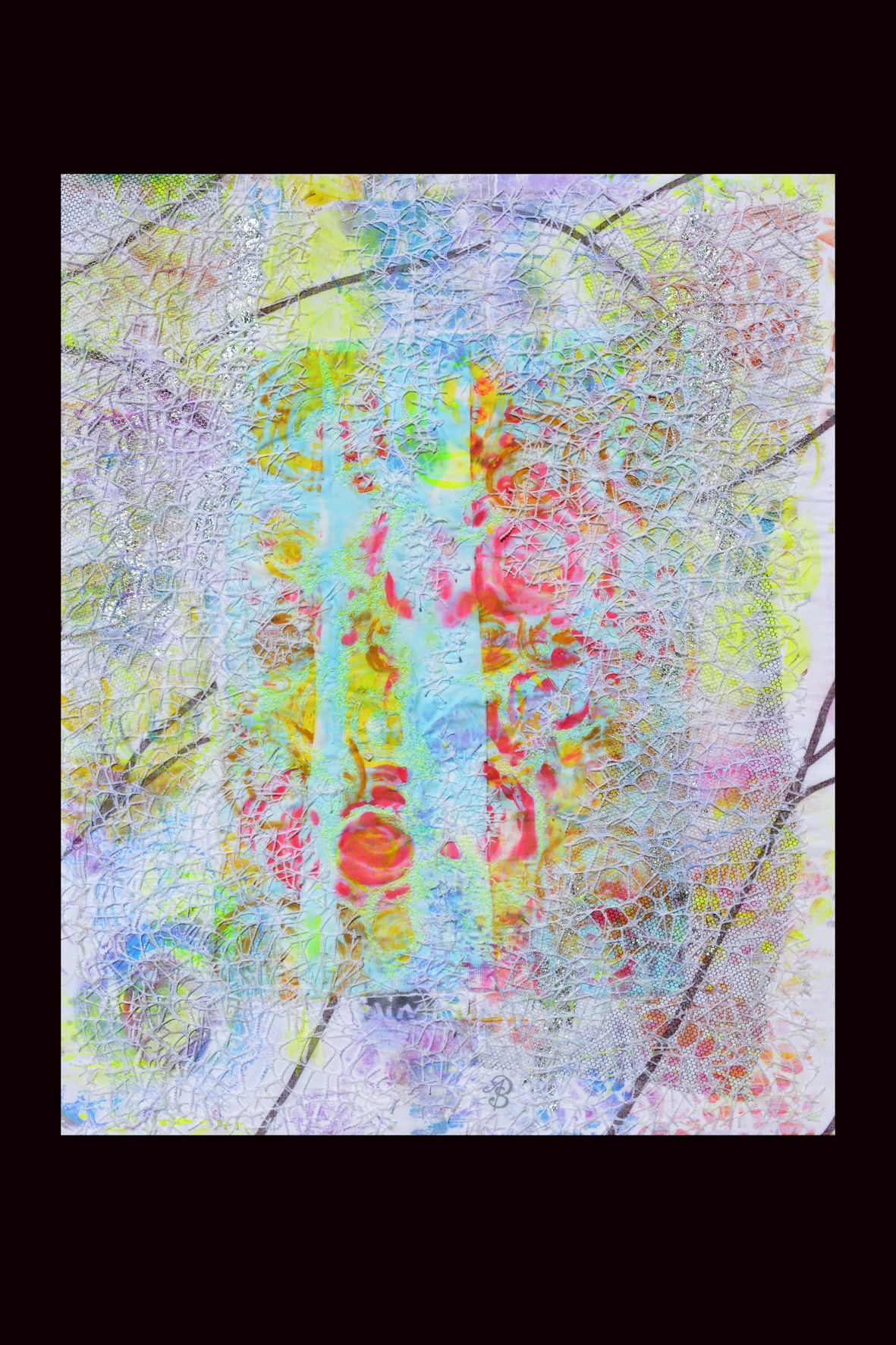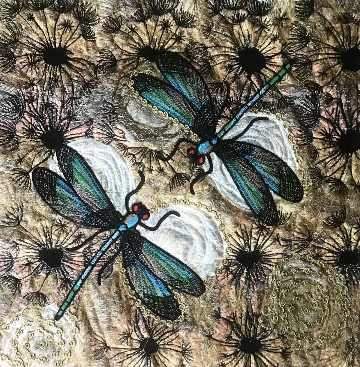 In her work, Juliette Eckel consistently combines traditional craft techniques such as monastery stitching with modern means such as digital printing processes. Her mostly framed, richly detailed works invite – in the spirit of Wilhelm Busch – to discover "art in the attention to small things."