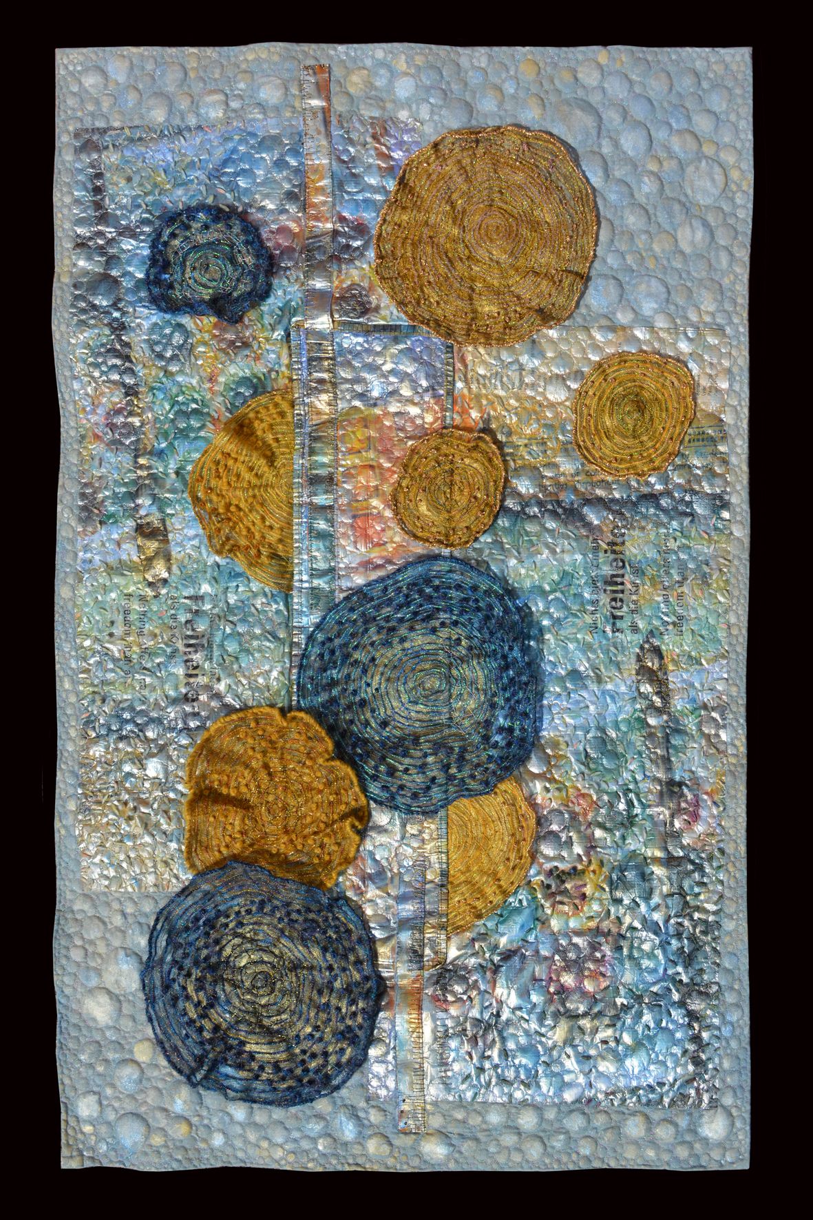 Anke Pradel-Schönknecht, on the other hand, uses her expertise in textile craftsmanship to create imaginative structures, which she translates into expressive art quilts and paintings. Her works seem like textile narratives in which longing, wanderlust, and wonder are interwoven.