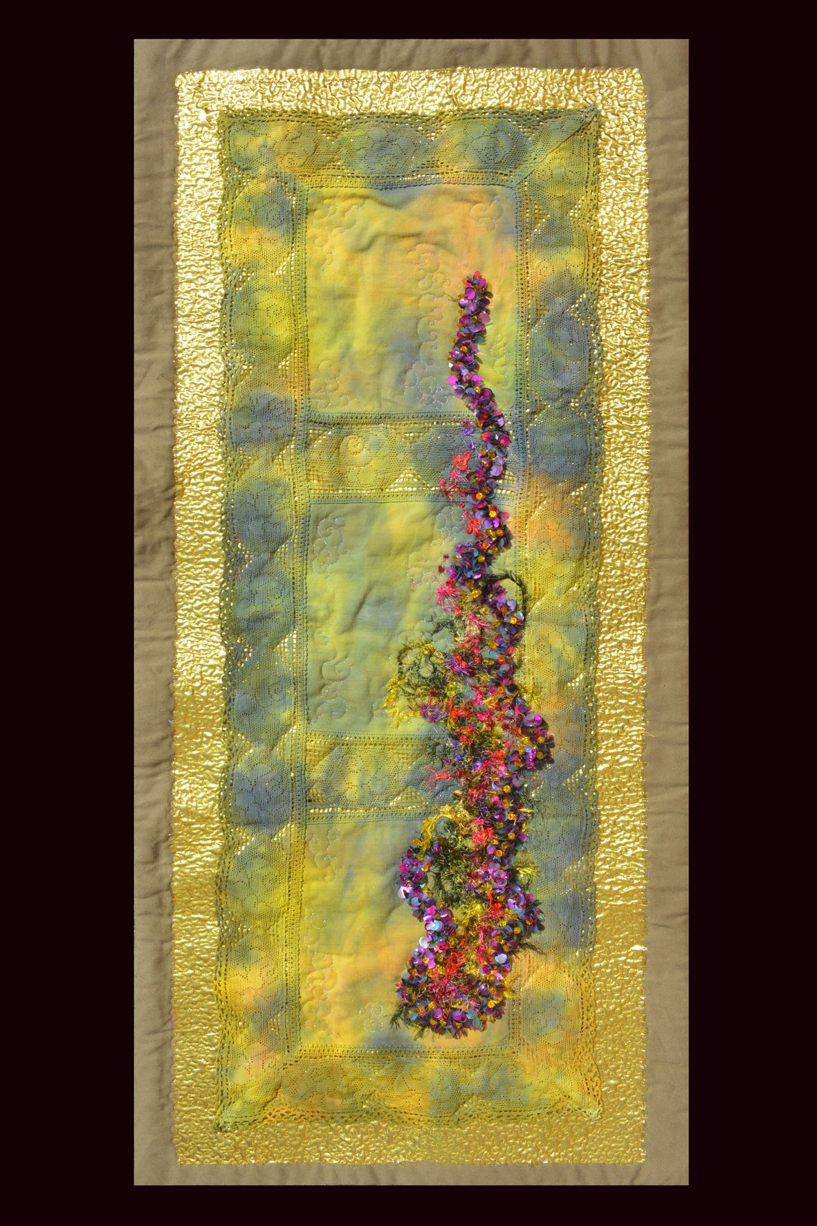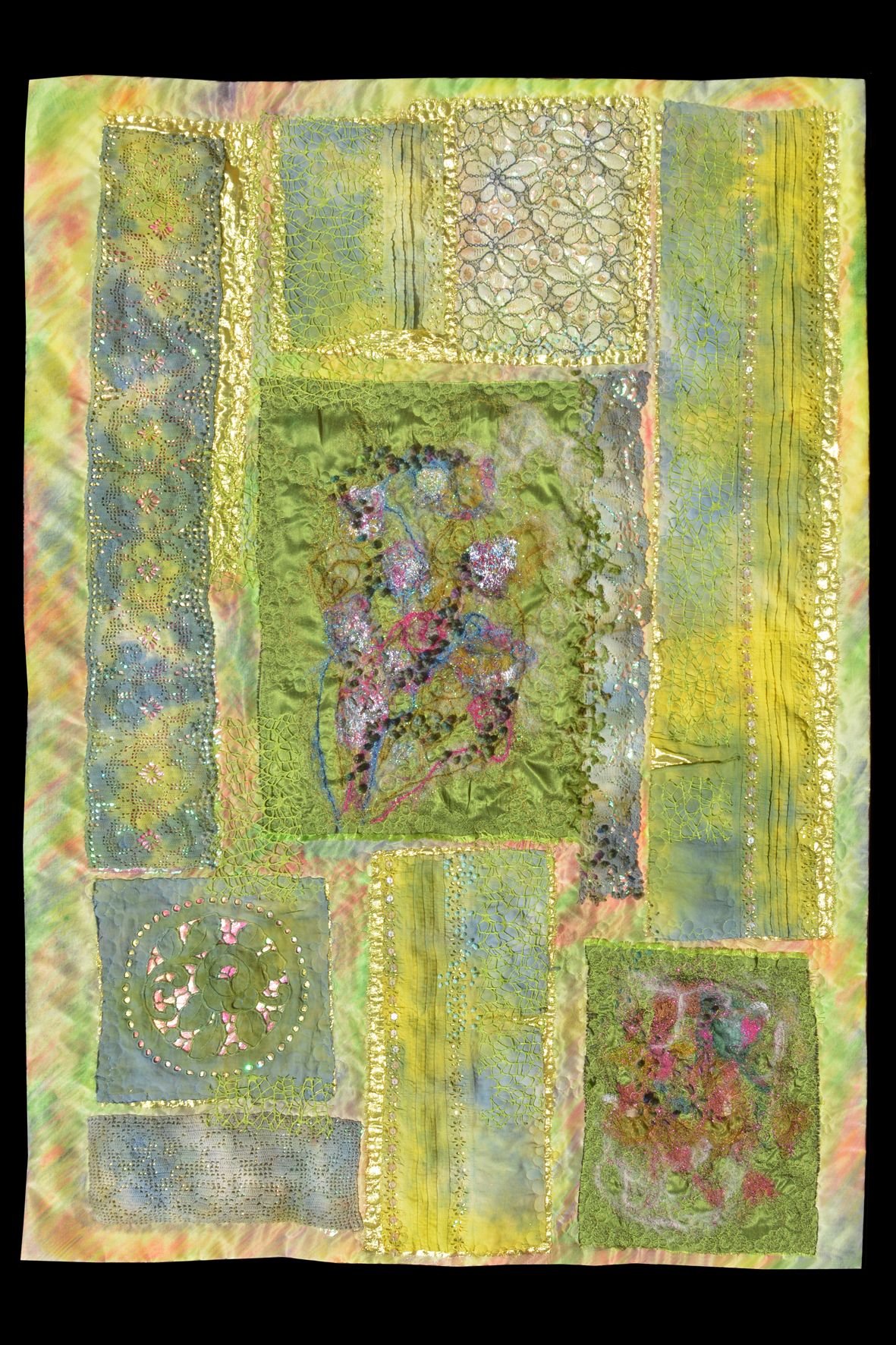 Anke Pradel-Schönknecht graduated as a designer from the Berlin-Weißensee Art Academy in 2004. Over almost two decades, she gained extensive experience working with a wide variety of textile materials in the design of costumes at the Meiningen State Theater. Today, she uses this knowledge in her artistic work, creating art quilts and canvas paintings. She draws her inspiration from dreams, nature, and travels to distant lands. Each of her pieces tells its own story and is handcrafted with meticulous attention to detail.