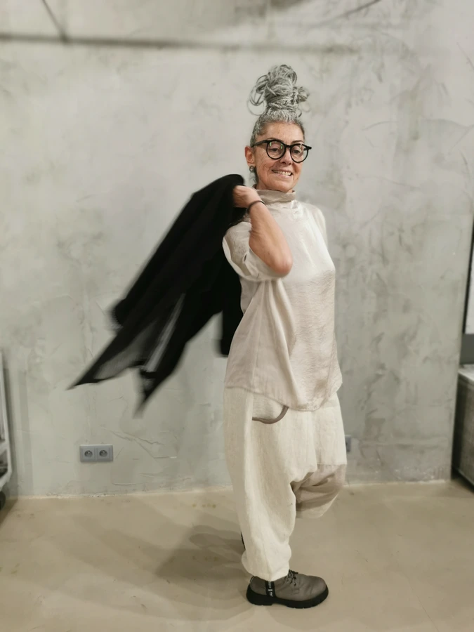 Iveta Nedomová is one of the distinctive figures of the Czech fashion scene. She has been creating under her own brand since 1994, and her signature style is unmistakable – minimalist cuts, natural materials, and an emphasis on comfort and individuality. She works with linen, hemp, silk, and bamboo, designing garments that flatter a wide range of body types.