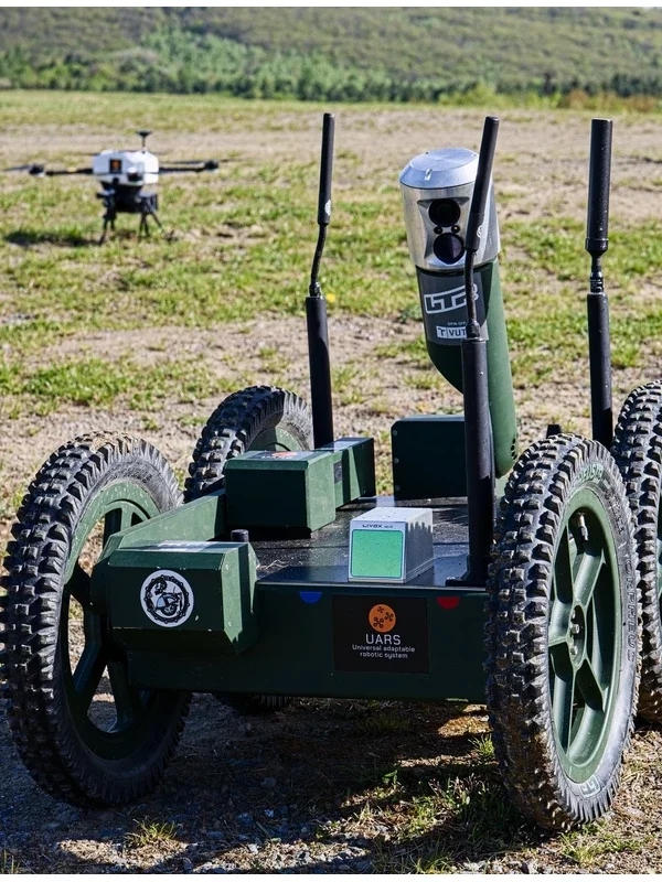 The exhibit is a complex reconnaissance system consisting of an autonomous swarm of ground robots (3 units) and multirotor drones (10 units) designed for remote reconnaissance. The system also includes a complete system design, incorporating a communication subsystem and software integrated into a special command case for the mission leader. The presented system develops knowledge, methods, tools, and technologies supporting the operational readiness of the armed forces, particularly in the field of reconnaissance and in the activities of emergency and rescue services when addressing large-scale security incidents. The presented system is capable of fully autonomous data acquisition within a defined perimeter using various specialized sensors, including the generation of highly accurate georeferenced 3D mapping data, as well as the detection and measurement of CBRN threats. The system can also autonomously identify vehicles and personnel in the area of interest using artificial intelligence technologies, moreover, thanks to its high level of autonomy, it significantly reduces the required operator workload — typically to a single person.
