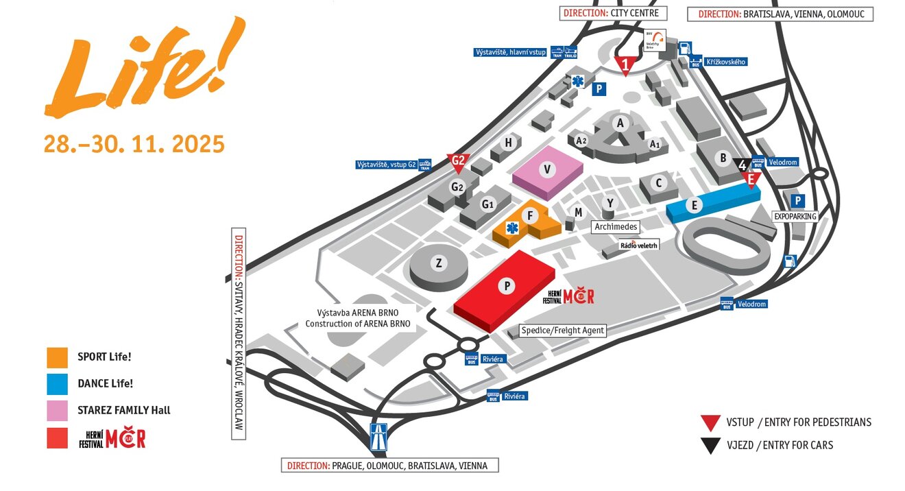 It is not allowed to enter the expo grounds with a bicycle or a scooter. Please use the racks in front of the main entrance to station them.