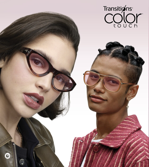 The second new product is Transitions Color Touch, ultra-dynamic lenses available in a subtle gradient tone or full tint. They are highly responsive to light and provide eye protection by filtering blue-violet light indoors and outdoors while blocking UVA and UVB radiation.