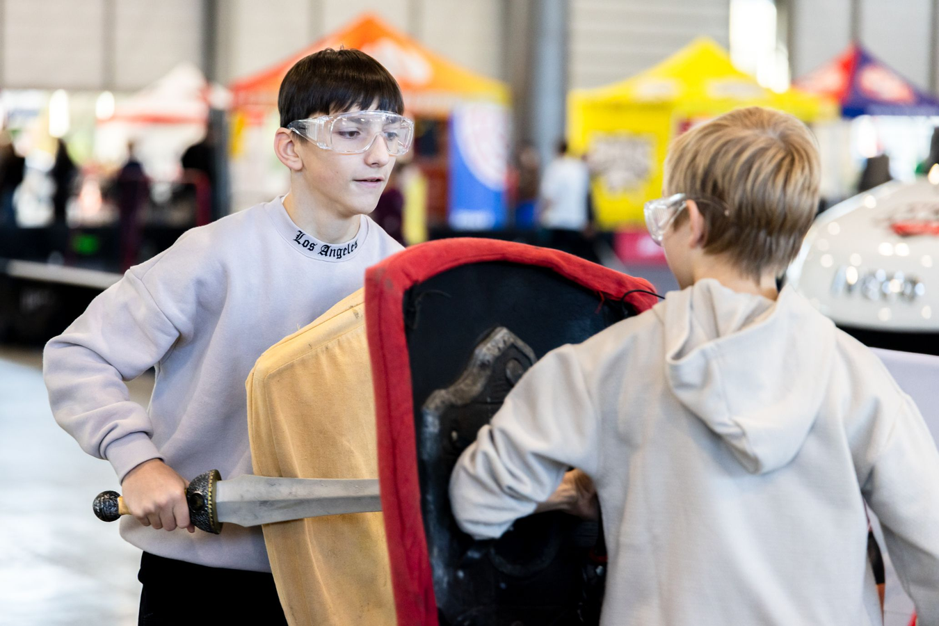 Hala V je zcela zaplněná sportovními atrakcemi, ve kterých najdou vyžití i ti nejmenší návštěvníci. Novinkou je letos nafukovací bludiště, historický šerm a akrobatická kostka.