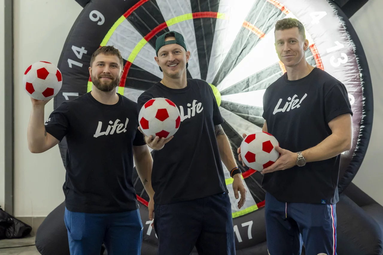 Další výzvou byl fotbalový terč od Zbrojovky Brno. Martin Pek, který má k fotbalu díky své freestylové průpravě blízko, se okamžitě chopil balónu a trefoval zásahy s úsměvem. Tomáš Bábek překvapil nejen přesností, ale i odhodláním – a Adam Mendrek předvedl cit pro pohyb, který využívá při badmintonu. Soutěžili mezi sebou s lehkostí i humorem a bavili všechny okolo.