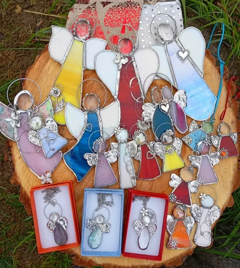 Pod značkou Andělské originály vznikají jedinečné šperky z minerálů, závěsné vitráže v Tiffany technice i autorské doplňky, v nichž se snoubí cín, sklo a přírodní kameny. Každý kousek pochází z jejího ateliéru a nese osobitý rukopis i duchovní náboj.