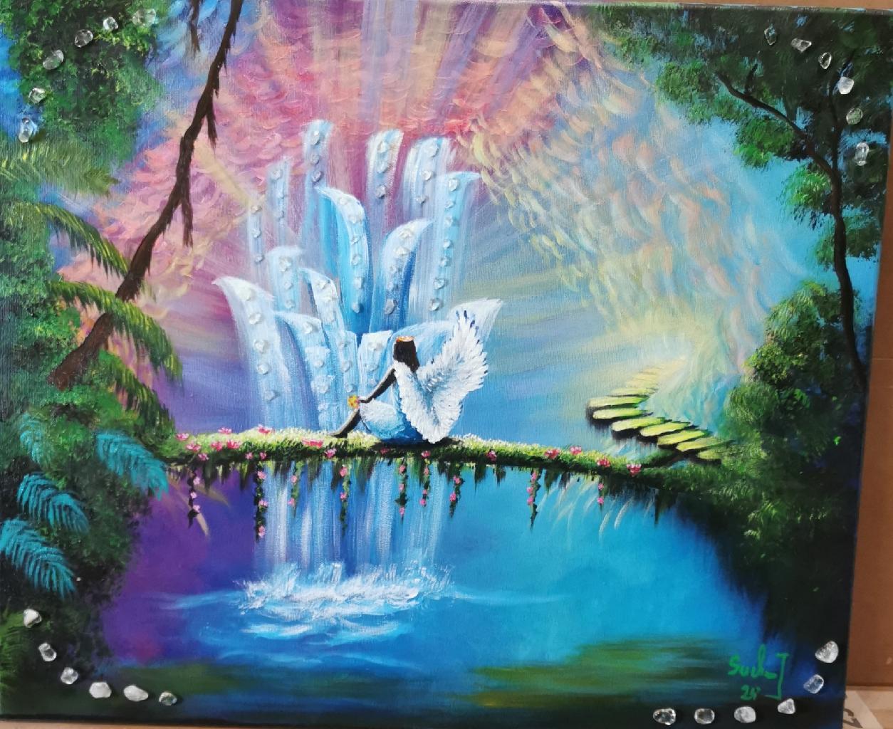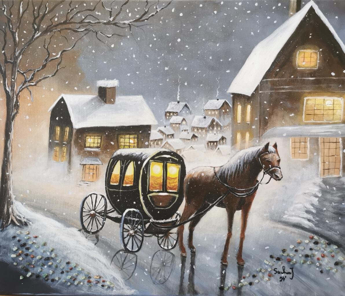 Jarmila Suchánková začala tvořit své obrazy až v pozdním věku. Maluje akrylem a do obrazů vkládá kameny. Její tvorbu můžete vidět na květnových Minerálech Brno 2025.