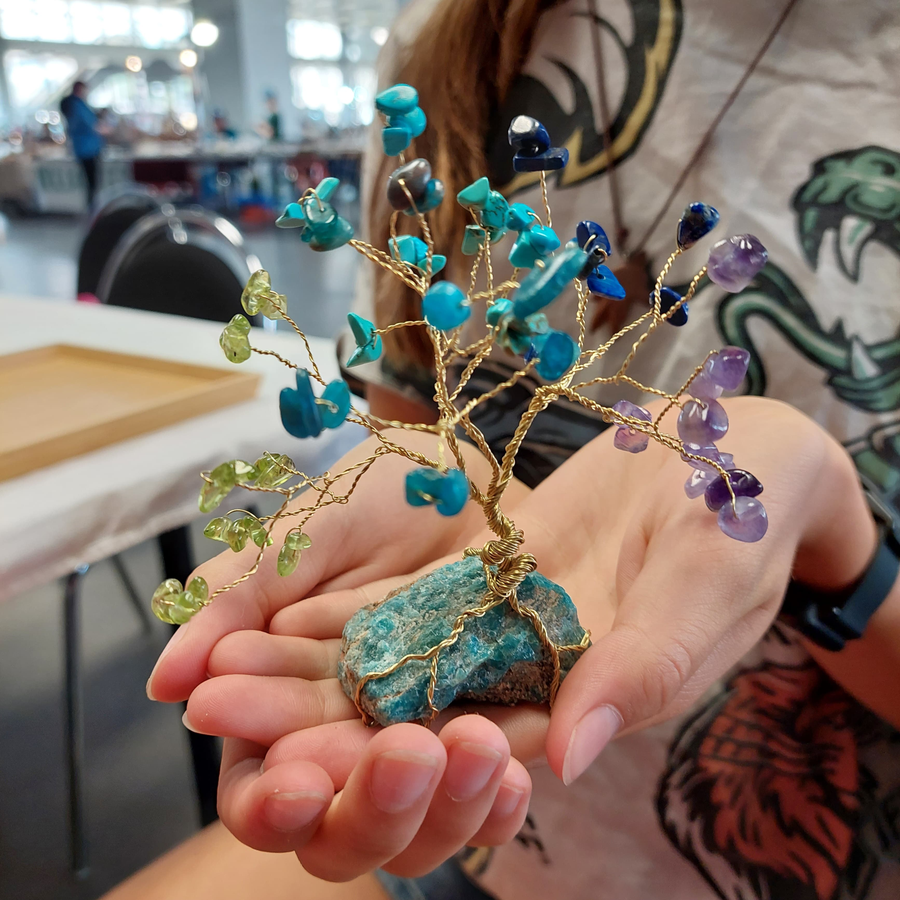 Také letos se návštěvníci veletrhu Minerály Brno mohou těšit na oblíbený stromečkový workshop, který připravuje Alicja Sabelová ART. Děti i dospělí si zde budou moci vytvořit svůj vlastní stromek z minerálů a drátků – originální ozdobu nebo krásný dárek pro své blízké.