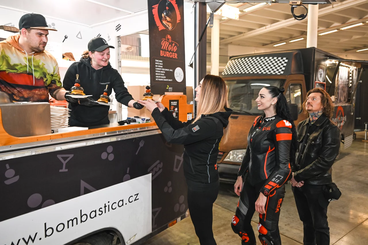 Burger aréna na Motosalonu je svět, který vás vtáhne už z dálky, směsice vůní grilu, koření, dýmu a živé energie, která k motorkám neodmyslitelně patří. Je to místo, kde si po celém dni mezi stroji můžete na chvíli odpočinout, nadechnout se a dát si něco, co vás znovu nakopne. Každý food truck tu má vlastní styl, vlastní příběh a hlavně chuť, která vás přiměje přemýšlet, jestli si nedat ještě jednu porci.