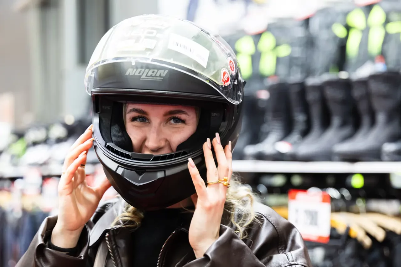 Dominantní značkou expozice je italský Nolan, tradiční výrobce, který vyrábí helmy už od roku 1972. V nabídce nechybí oblíbené překlápěcí modely, které patří mezi nejžádanější vůbec. „Překlápěčky jsou dlouhodobě největší hit. Lidé je chtějí kvůli pohodlí i praktičnosti,“ vysvětluje Michal Hrabák. Pro sportovně založené jezdce jsou tu pak ultrakarbonové závodní přilby, které vynikají nízkou hmotností a špičkovými parametry. Podle zástupců firmy často předčí konkurenci nejen technicky, ale i zpracováním a designem. Velkým lákadlem je také široká paleta barev a grafických variant – od decentních po výrazně závodní.