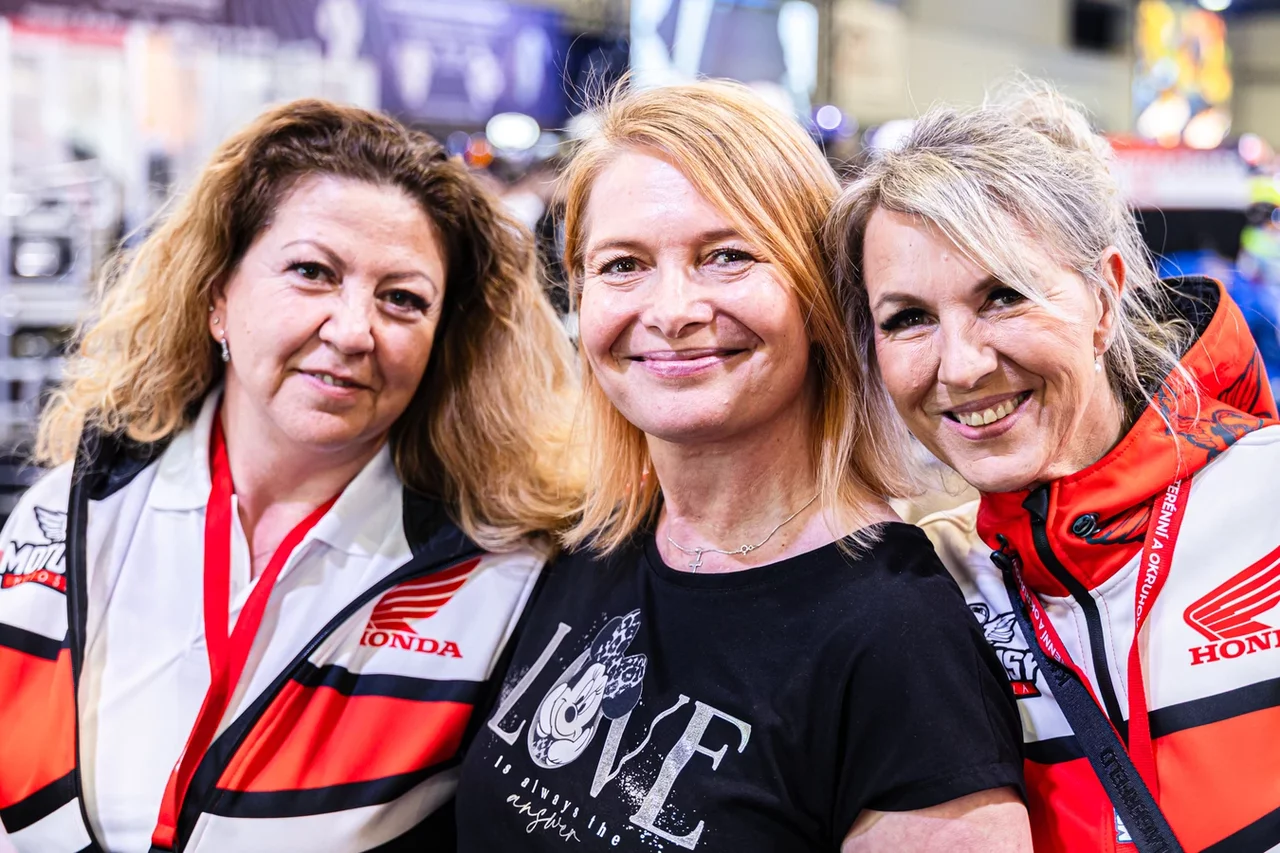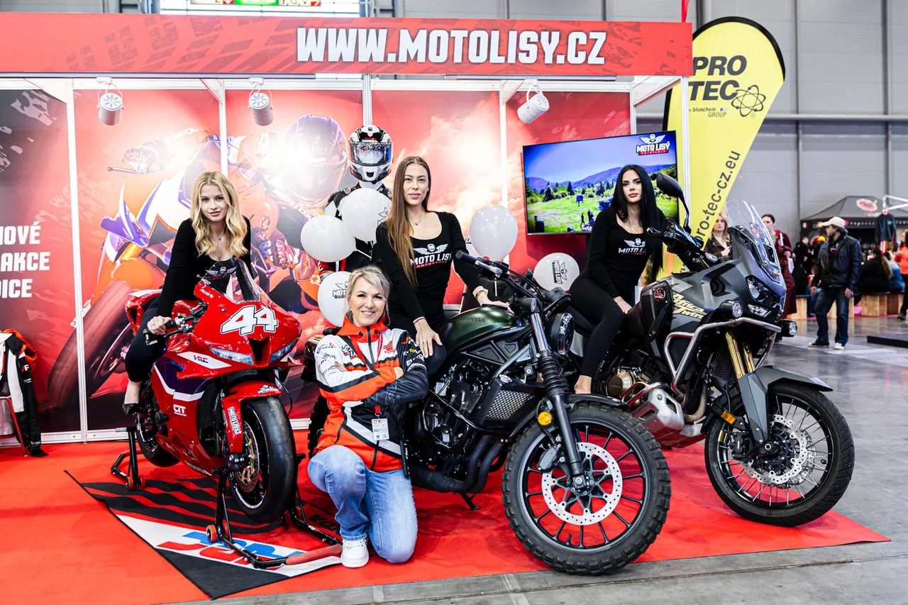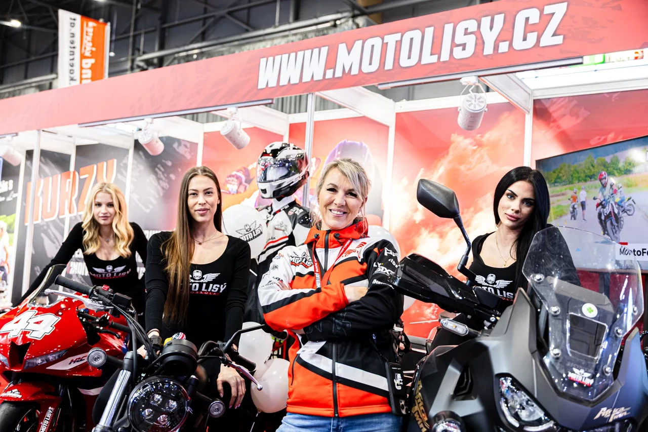 Stánek Moto Lisý letos září také ženskou energií. Mirka Lisá, známá instruktorka a propagátorka bezpečné jízdy, má jasno: ženy na motorkách už dávno nejsou výjimkou.