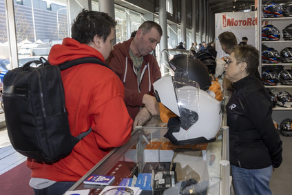 Jezdci si zkouší na Motosalonu boty u Geneze