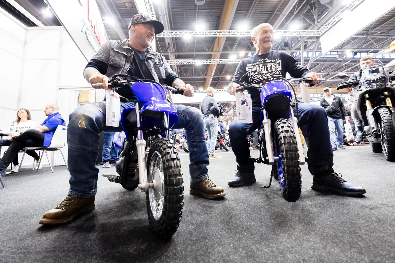 První kroky vedly do pavilonu G1, kde se zastavili na stáncích značek BMW, Jawa a Geneze. Následně pokračovali do pavilonu P, kde si prohlédli a vyzkoušeli motocykly na expozicích značek Honda, Harley-Davidson, Suzuki, CFMOTO a Yamaha.