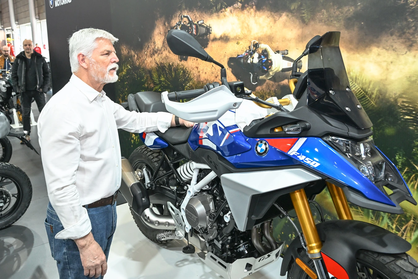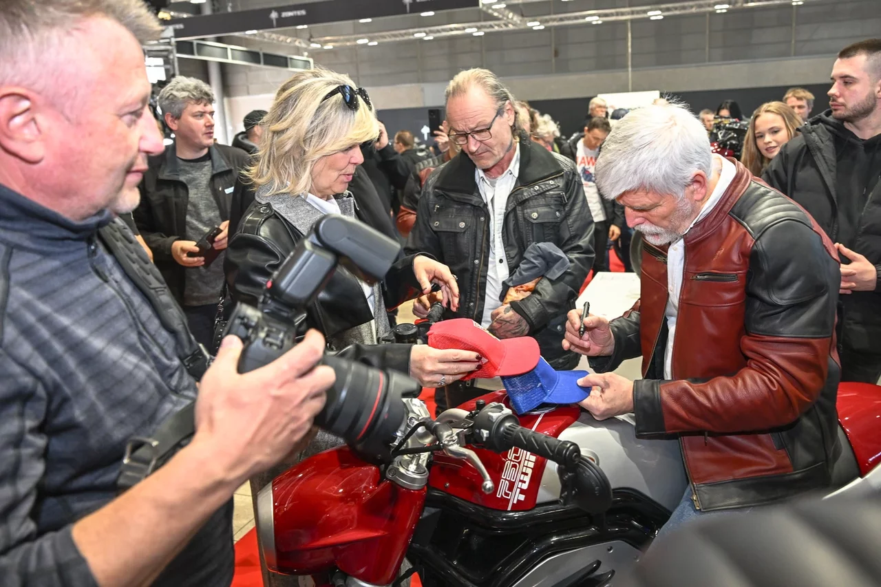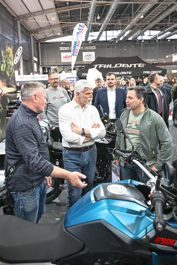 V expozici Hondy čekal jeden z nejsledovanějších nových modelů v ČR, cestovní čtyřválec Honda CB1000GT, ještě větší zájem ale u prezidenta a jeho kamarádů vzbudil šestiválec Goldwing. V expozici Piaggia to byly nové Aprilie, ukázalo se, že Petr Pavel dobře zná ty hlavní hodnoty cestovních endur, jako je výška sedla a hmotnost.