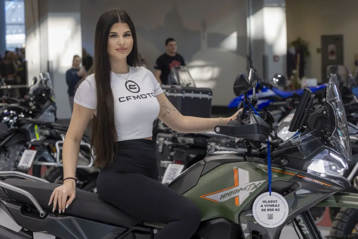 Sobota je extrém, ve čtvrtek to bylo lepší, to byla pohoda. Dnes už si musíme každou chvíli dát pauzu a jít do zázemí. Je tu tolik lidí se zájmem o motorky CFMoto , že nás každou chvíli někdo poprosí, abychom sesedly a nechaly ho sednout, že si motorku chce vyzkoušet.