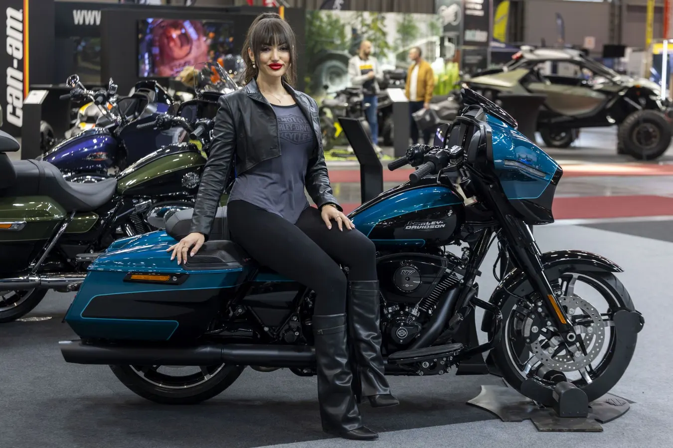 Daniela, 24 let, studentka a Adéla, 23 let, profi modelka, v expozici Harley-Davidson