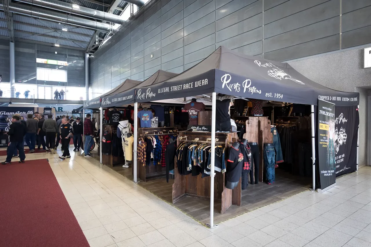 „Náš sortiment je hlavně volnočasové oblečení pro muže i pro ženy, ale máme i dětské oblečení. Máme třeba i bundy na motorku s chráničem a s Kill barem,“ říká Michal Vaníček ze značky Arrested Pistons, která Rusty Pistons zastupuje.