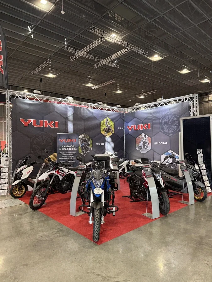 Značka YUKI zve návštěvníky Motosalonu do pavilonu F, kde představuje své aktuální modely motocyklů a skútrů. Součástí expozice jsou také stroje nominované v prestižní anketě Motocykl roku 2026.