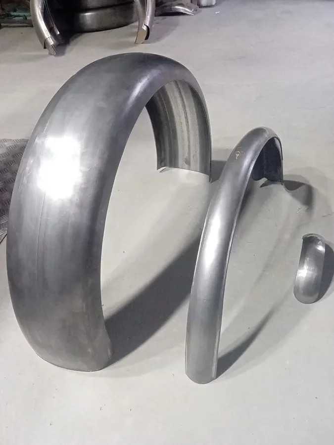 Poctivé klempířské řemeslo v podobě blatníků různé na historické motocykly doplníMoto Reno. Z tabule plechu vám vyrobí krásný kulatý blatník, který sedne jak zadel na hrnec.